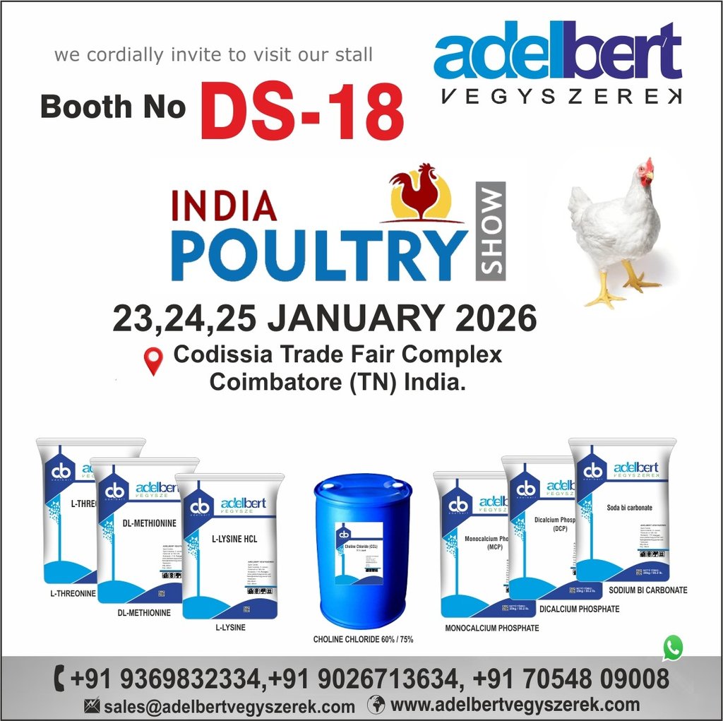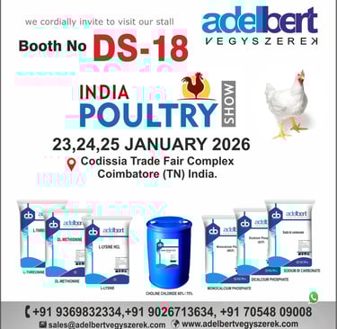 Adelbert Vegyszerek cordially invites you to visit our stall at the India Poultry Show 2026, one of the largest and most influential exhibitions for the poultry and animal nutrition industry in India.