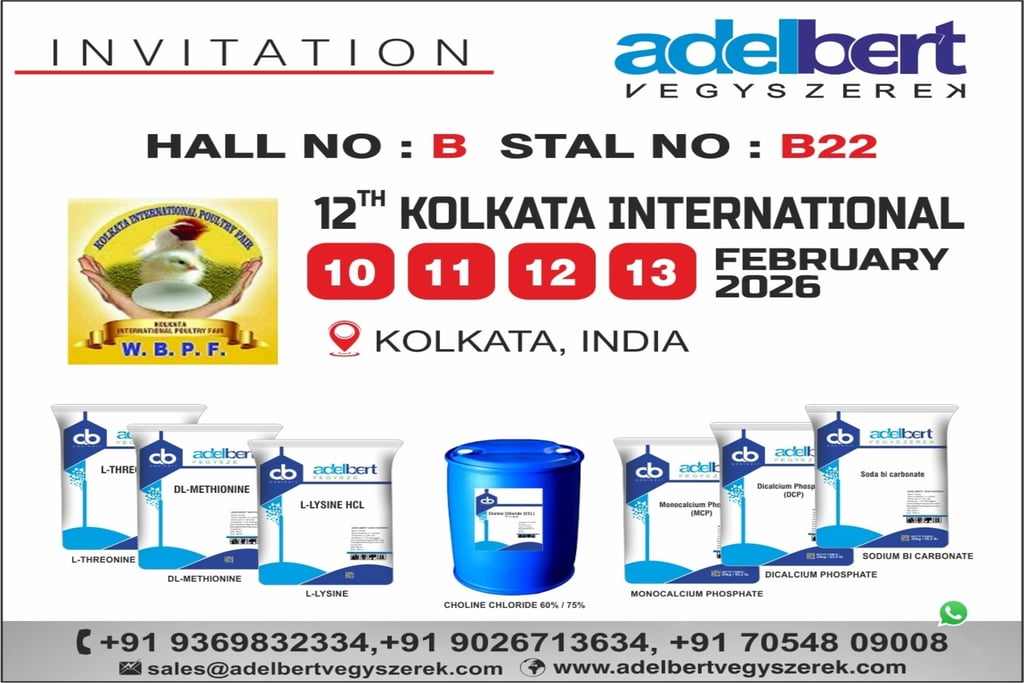 Adelbert Vegyszerek invites you to visit Hall B | Stall B22 at the 12th Kolkata International Poultry Fair (WBPF), held on 10β13 February 2026 in Kolkata, India.